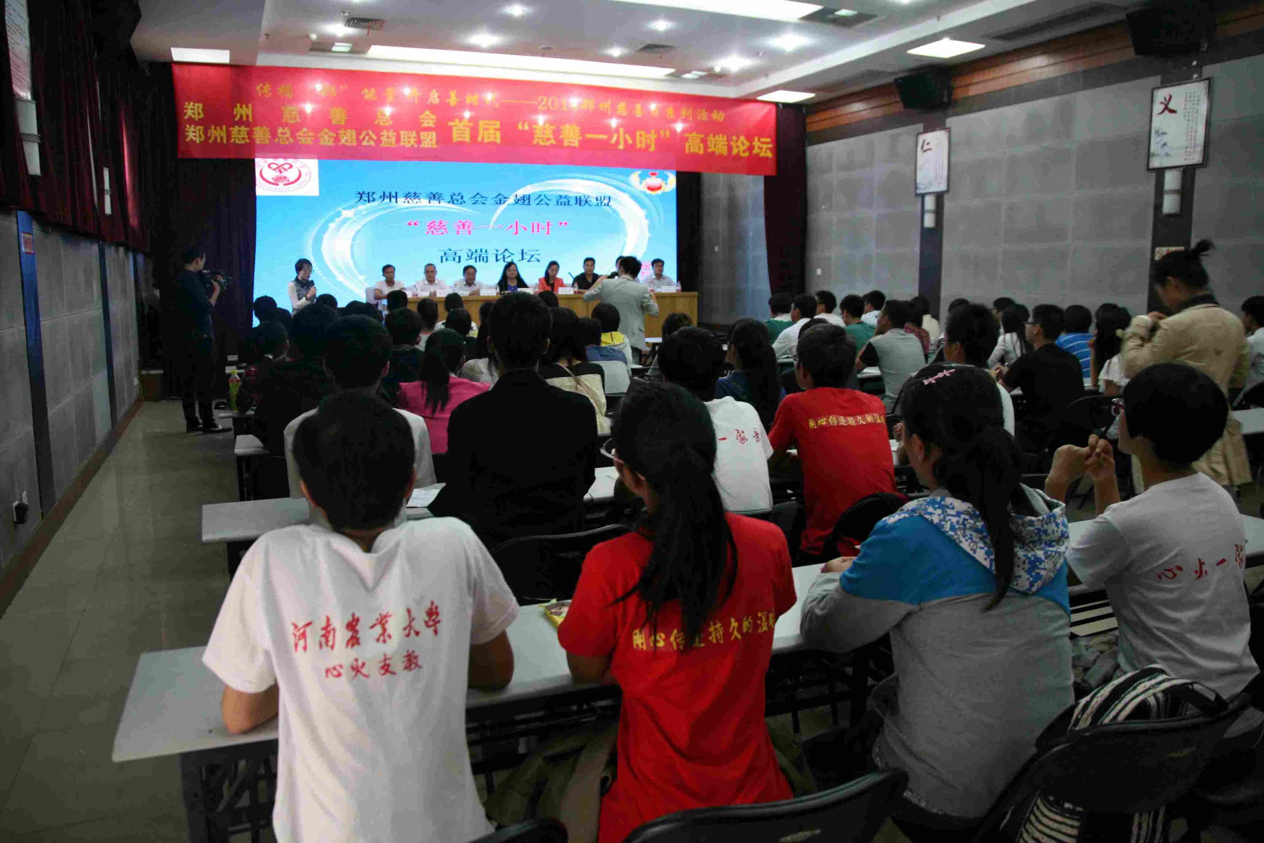 凝聚慈善力量,碰撞智慧火花。為踐行我會發(fā)起的“慈善一小時”活動,9月13日下午,我會聯(lián)合金翅公益聯(lián)盟共同舉辦的2014鄭州慈善大講堂之“慈善與我,我與慈善”論壇在青少宮拉開帷幕。鄭州慈善總會金翅公益大使、2014鄭州慈善總會“傳遞溫暖 呵護夕陽”大學生養(yǎng)老護理員項目中的優(yōu)秀學生代表,省內(nèi)各高校志愿者團隊負責人代表等參與了論壇。